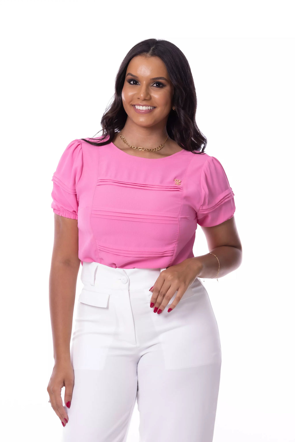 O grande diferencial da Blusa Va está nas pregas horizontais na parte frontal, que adicionam um toque fashionista e refinado à peça. Além disso, as mangas com acabamento franzido garantem um visual delicado e estiloso, tornando essa blusa uma opção versátil para diversas ocasiões.