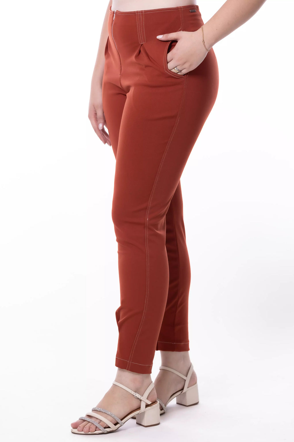 Sua modelagem skinny valoriza a silhueta, garantindo um caimento impecável e moderno. Os bolsos laterais adicionam funcionalidade, enquanto o recorte na barra traz um toque fashion e diferenciado. Versátil, essa calça transita facilmente entre produções casuais e sofisticadas, permitindo diversas combinações para um look atual e estiloso.